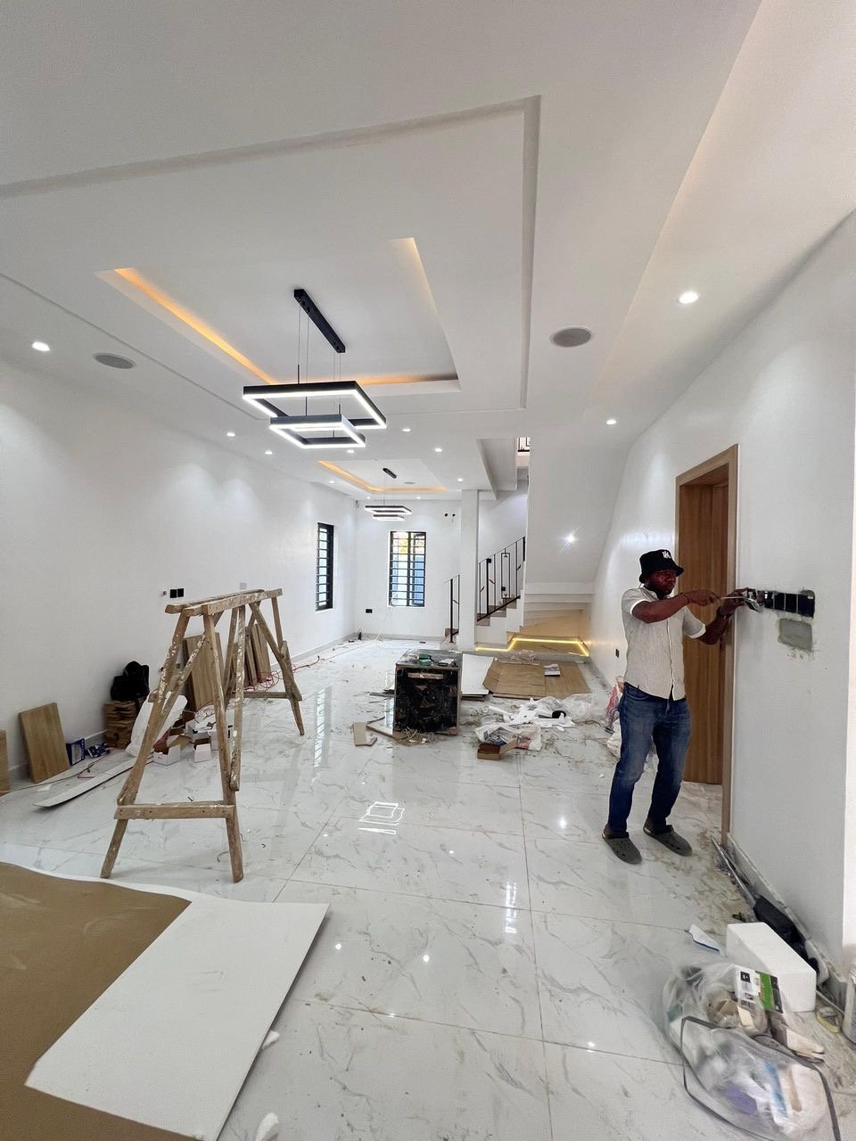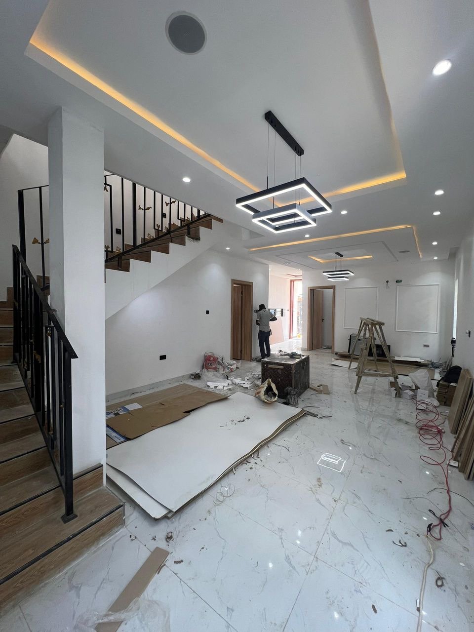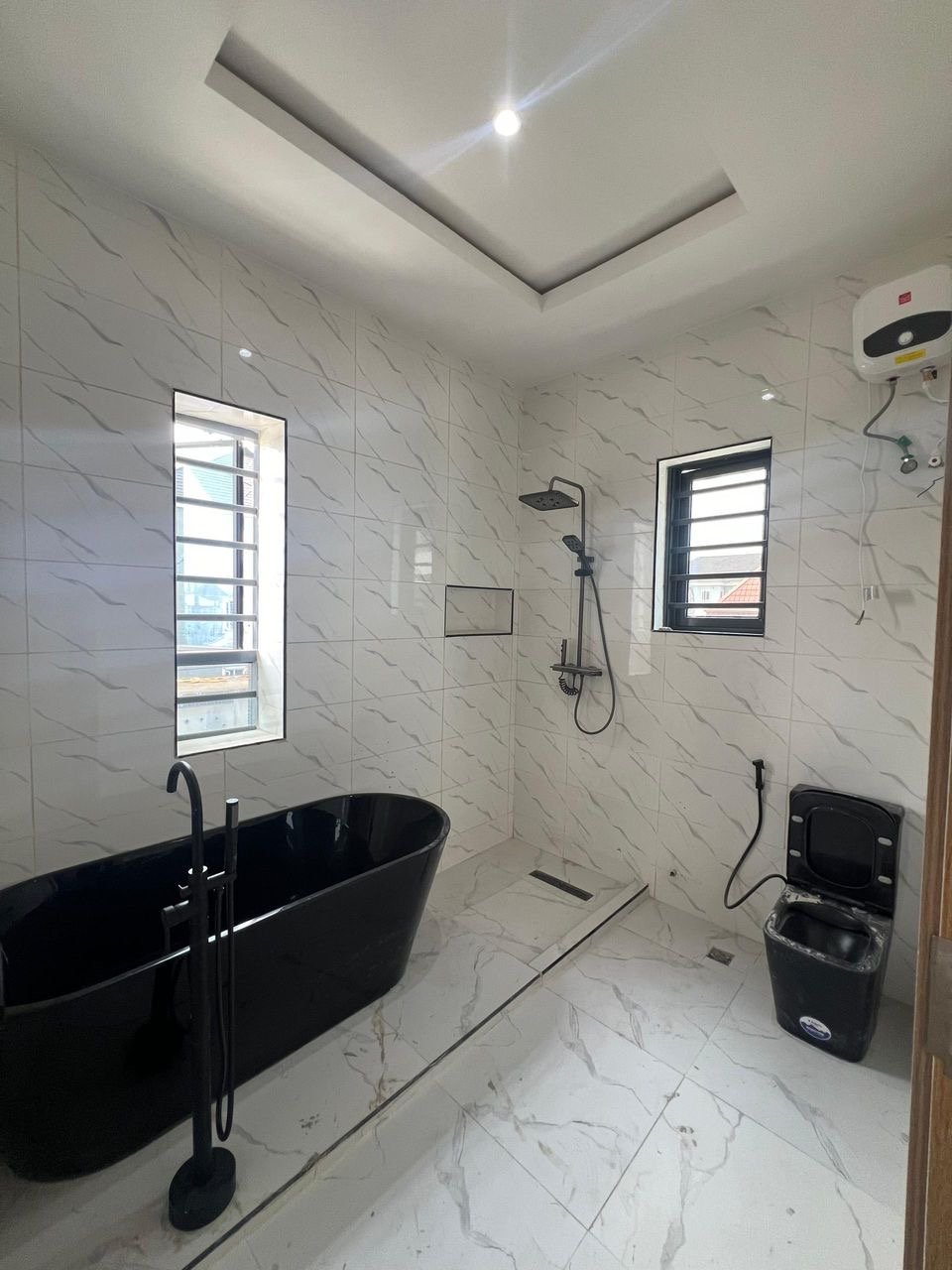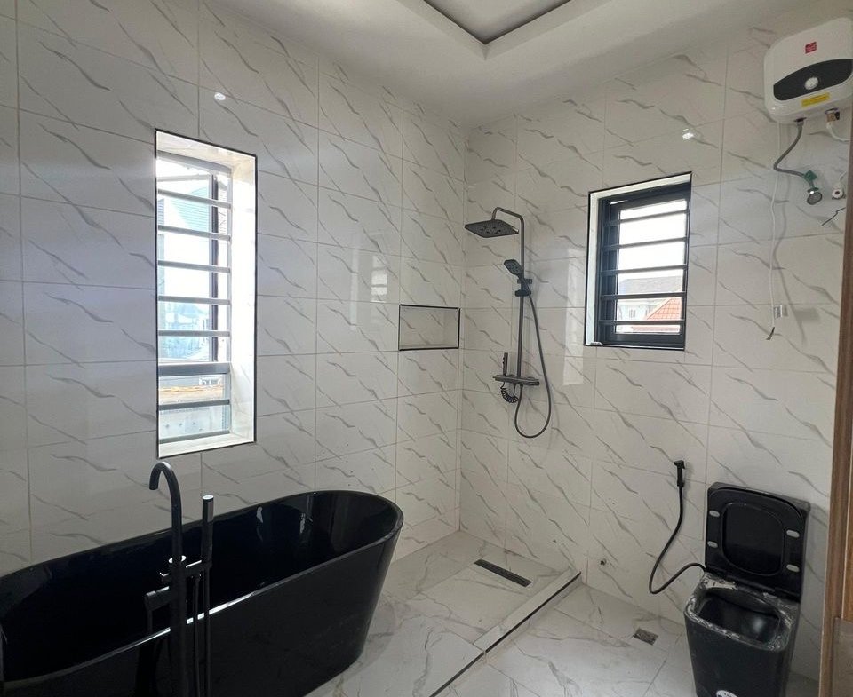 En-suite rooms | Spacious living quarters | Integrated Sound system | Family lounge | Smart home features | Fitted Wardrobes | Fitted kitchen | Jacuzzi | Water heaters | Modern toilet wares | Balcony | Beautiful lightings | Dining area | BQ | Spacious compound | Green Area | Stamped concrete floor | Good road network | Prestigious location | Close proximity to Major Malls & Market | 24/7 Security.