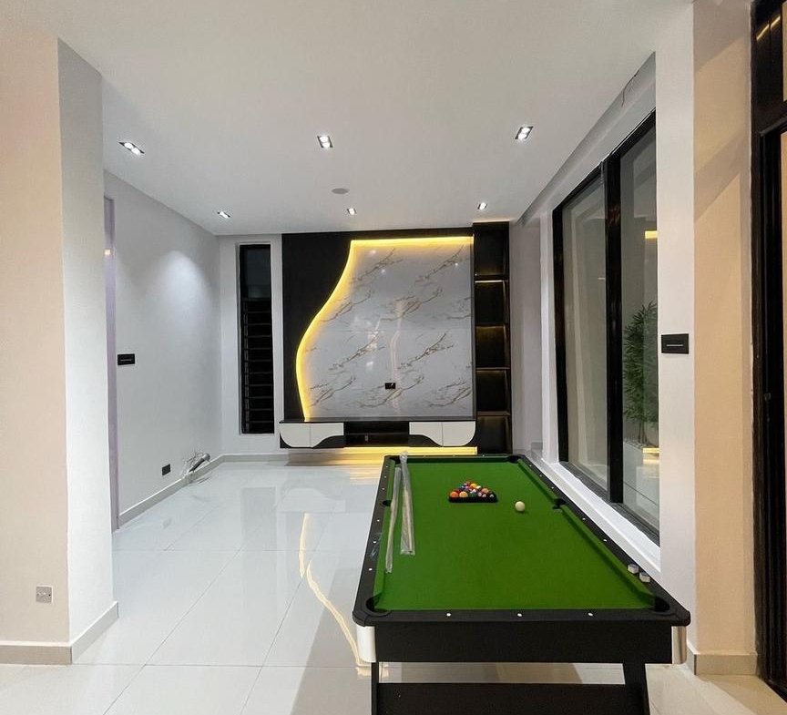 Contemporary Modern Design | Spacious Living Area | Dining | Aesthetic lighting | Modern Luxury Appurtenances | Family Lounge | TV Consoles | Inbuilt Audio System | Good road network | Fully Equipped And Fitted Kitchen | Pantry | Modern Appurtenances | Beautifully Crafted Wardrobes | Motion Sensor Lightings | All Rooms En-Suite | Luxury Sanitary Wares | Greenery | Maid’s Room | Secure Gated And Access Control Estate | BQ | Great Neighbourhood | Home Office | Gazebo | Swimming pool | Cinema