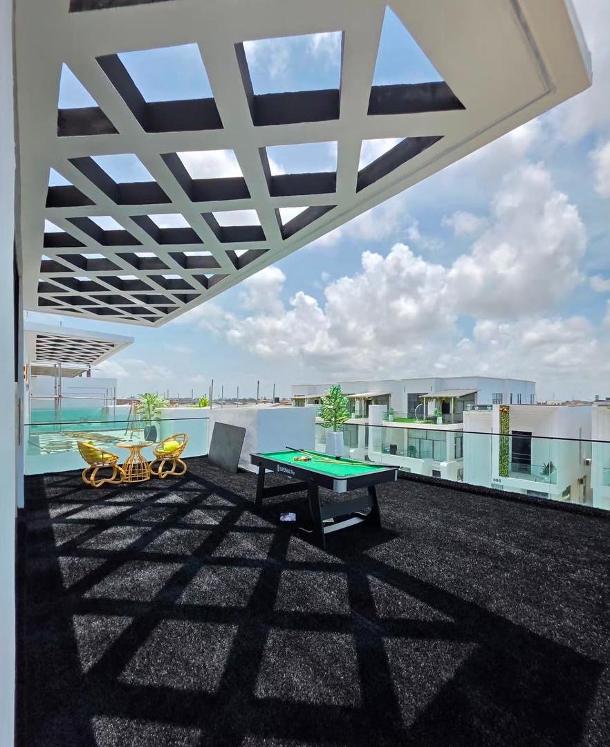 Contemporary Modern Design | Spacious Living Area | Dining | ⁠Aesthetic lighting | Modern Luxury Appurtenances | Family Lounge | TV Consoles | Inbuilt Audio System | Good road network | Fully Equipped And Fitted Kitchen | Pantry | Modern Appurtenances | Beautifully Crafted Wardrobes | Motion Sensor Lightings | All Rooms En-Suite | Luxury Sanitary Wares | Greenery | Maid’s Room | Secure Gated And Access Control Estate | ⁠BQ | Great Neighbourhood | ⁠Gazebo | ⁠Swimming pool | Rooftop terrace | ⁠Cinema