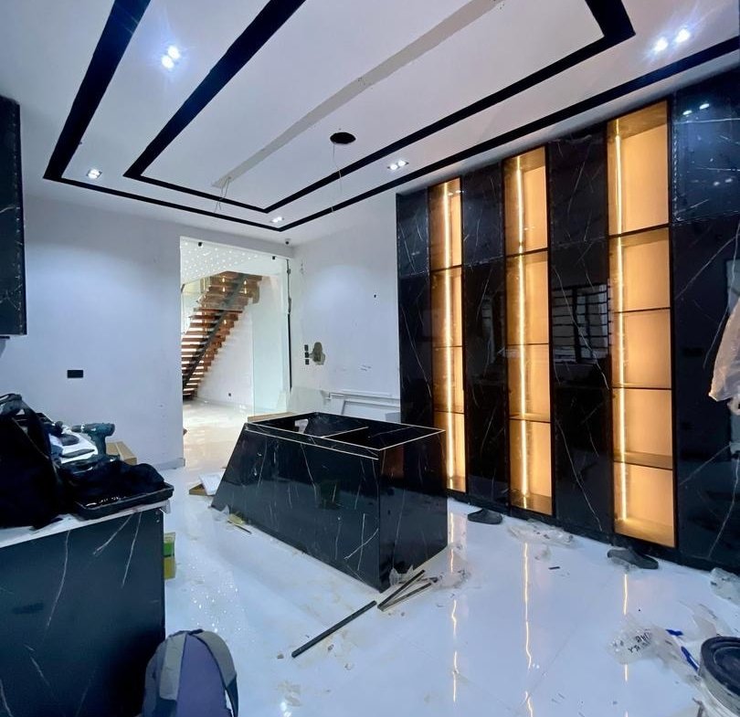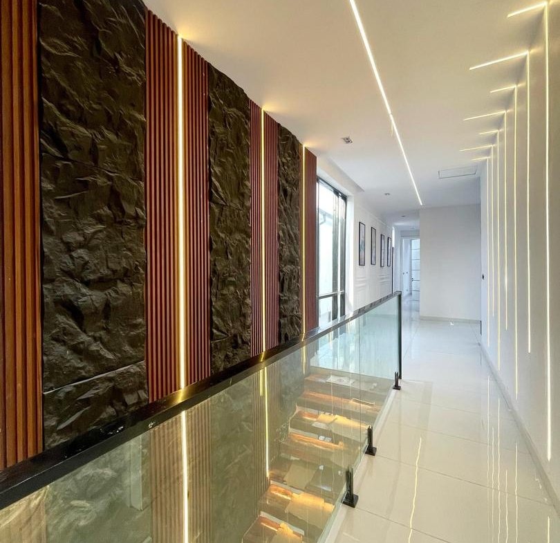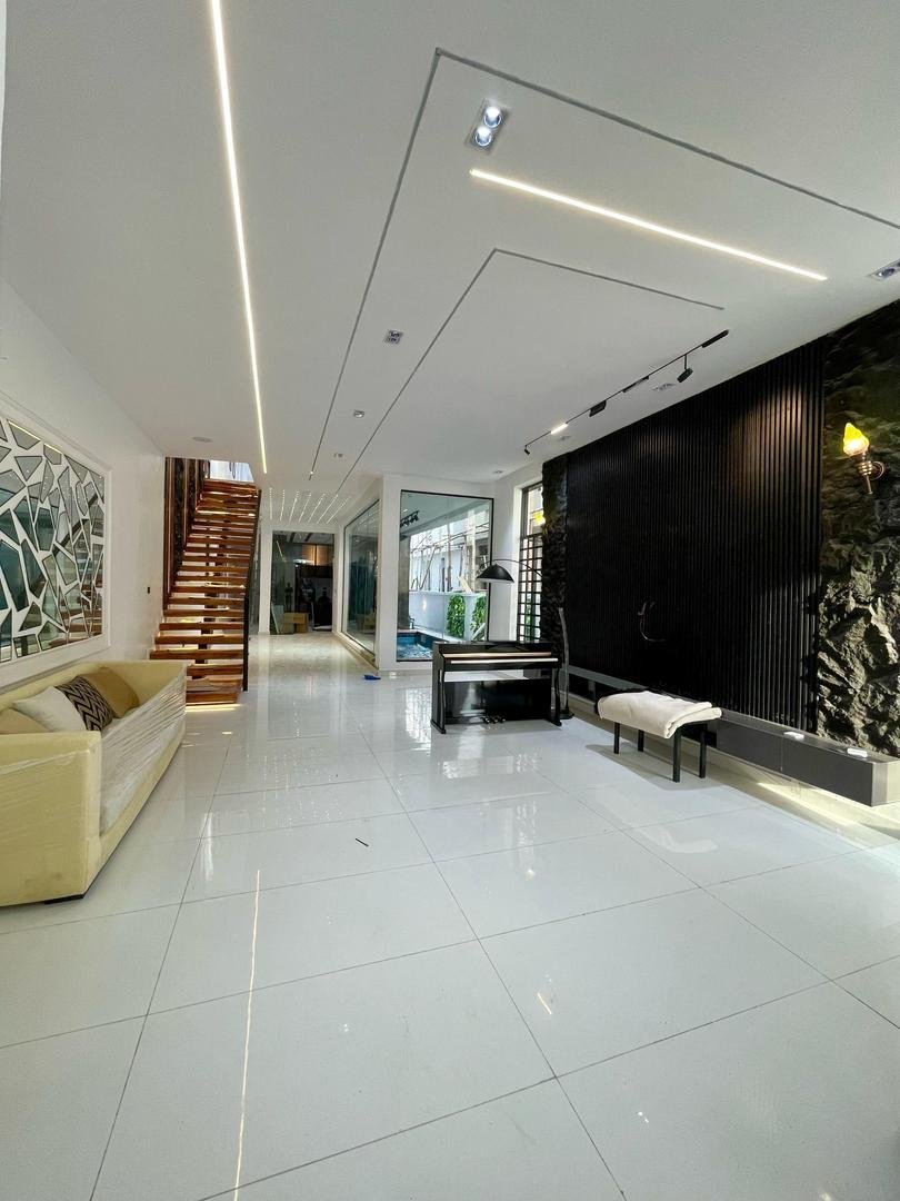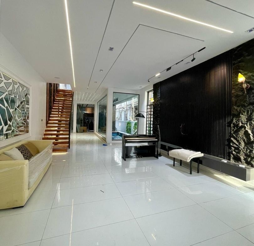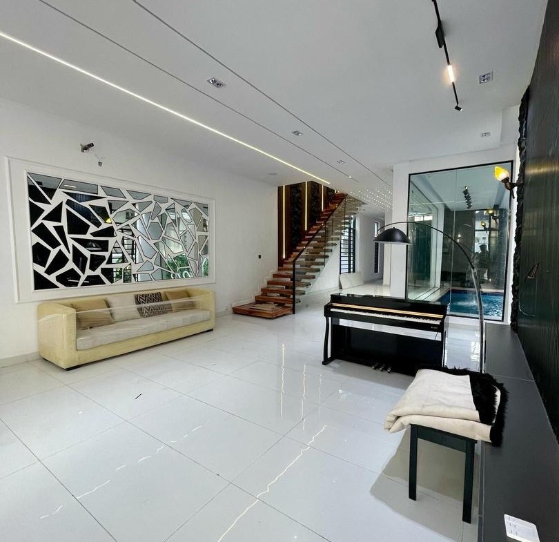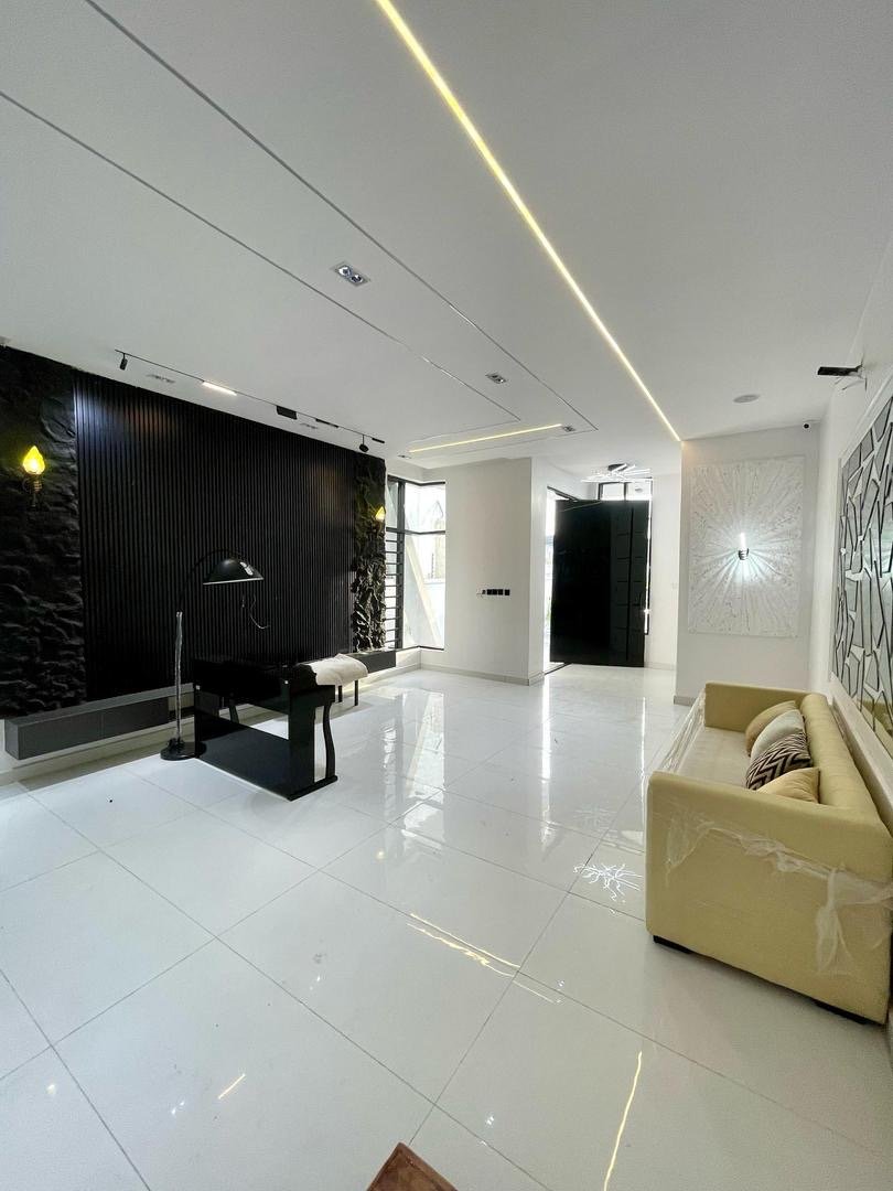 Modern Contemporary Architecture | Decently Finished To Detail | Ample Parking Space | Spacious Living Area | Classic Piano | Artwork Decor | Family Lounge | Dining Area | TV Consoles | Integrated Audio System | Gorgeous Lightings | Motion Sensor Stairways Lighting | Beautifully Designed Closets | Fully Fitted And Well Equipped Kitchen | Impressive Woodwork | Quality Wall Mirror Design | Luxury Sanitary Wares | Swimming Pool | All Rooms En-suite | Greenery | Boy’s Quarter | Secure Gated Access Control Estate | Great Neighborhood