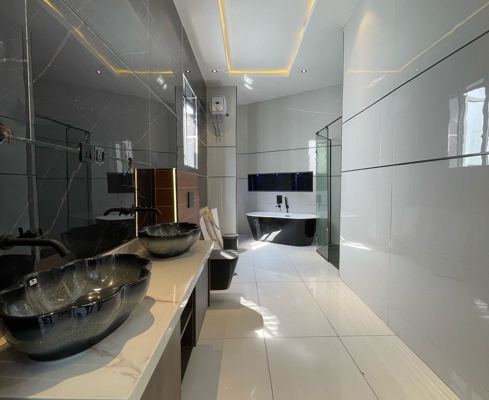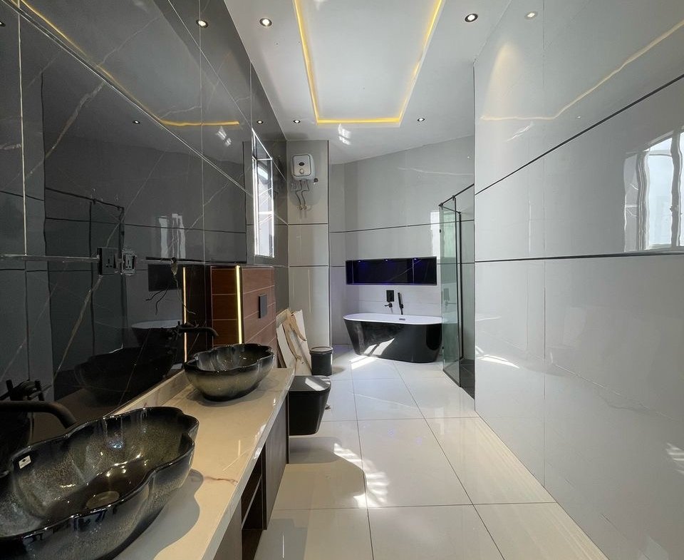All room En-suite | Aesthetic pop ceilings | Spot lighting | Chandelier | Sound system | Spacious living room | Double volume ceilings | Clean water | Top quality tiles | Swimming Pool | Master’s suite | Walk-in closet | Walk-in shower | Ample parking spaces | Secured estate | Good access roads | BQ