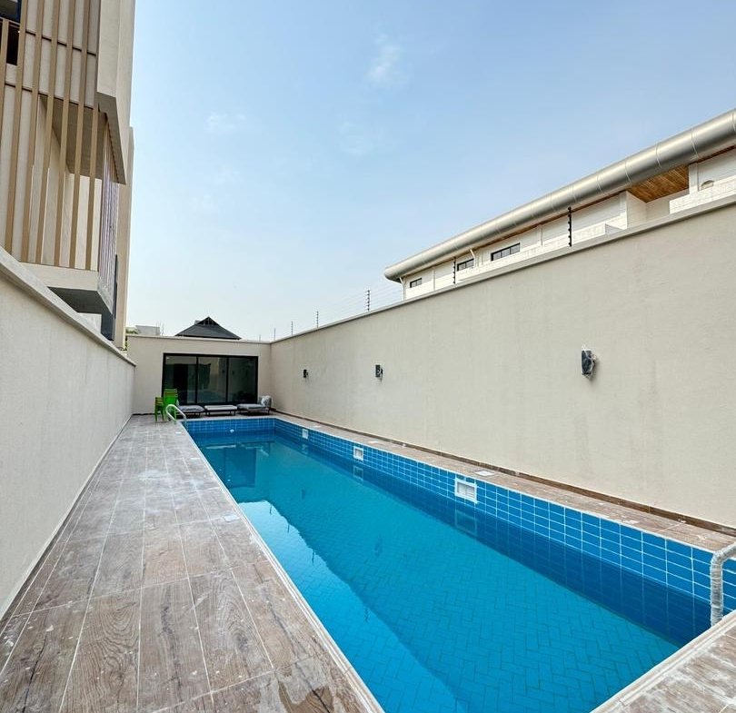 Ensuite rooms | Aesthetic pop ceilings | Spot lighting | Spacious living room | Cctv cameras | Clean water Top quality tiles | Pantry Island countertop | Master’s suite | Walk-in closet | Walk-in shower | Jacuzzi | Custom vanity | Ample parking spaces | Swimming pool | Gym | Bq | Secured estate | Good access roads | Flood free.